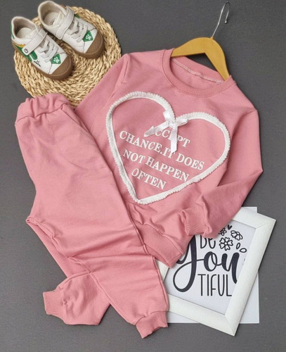 بلوز شلوار ست دخترانه پنبه طرح قلبی عیدانه