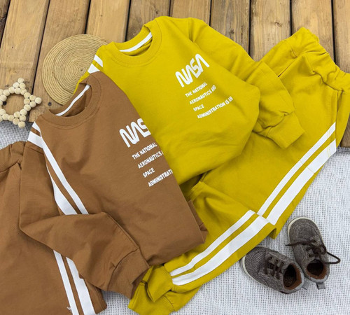 ست بلوز و شلوار پسرانه پنبه طرح ناسا رنگ آجری عیدانه