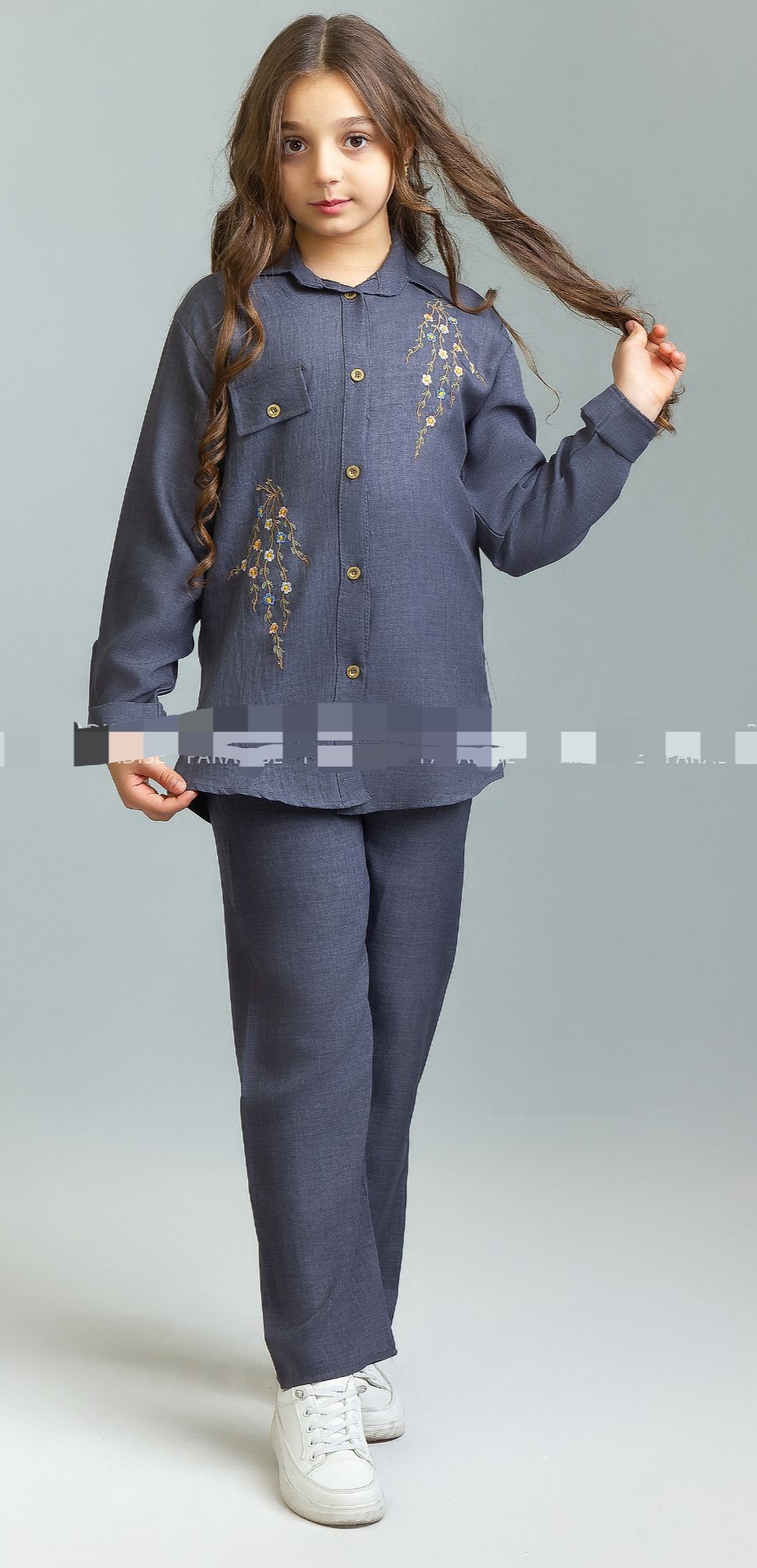 شومیز شلوار ست دخترانه گلدوزی شده شانتون اعلا رنگ بنفش