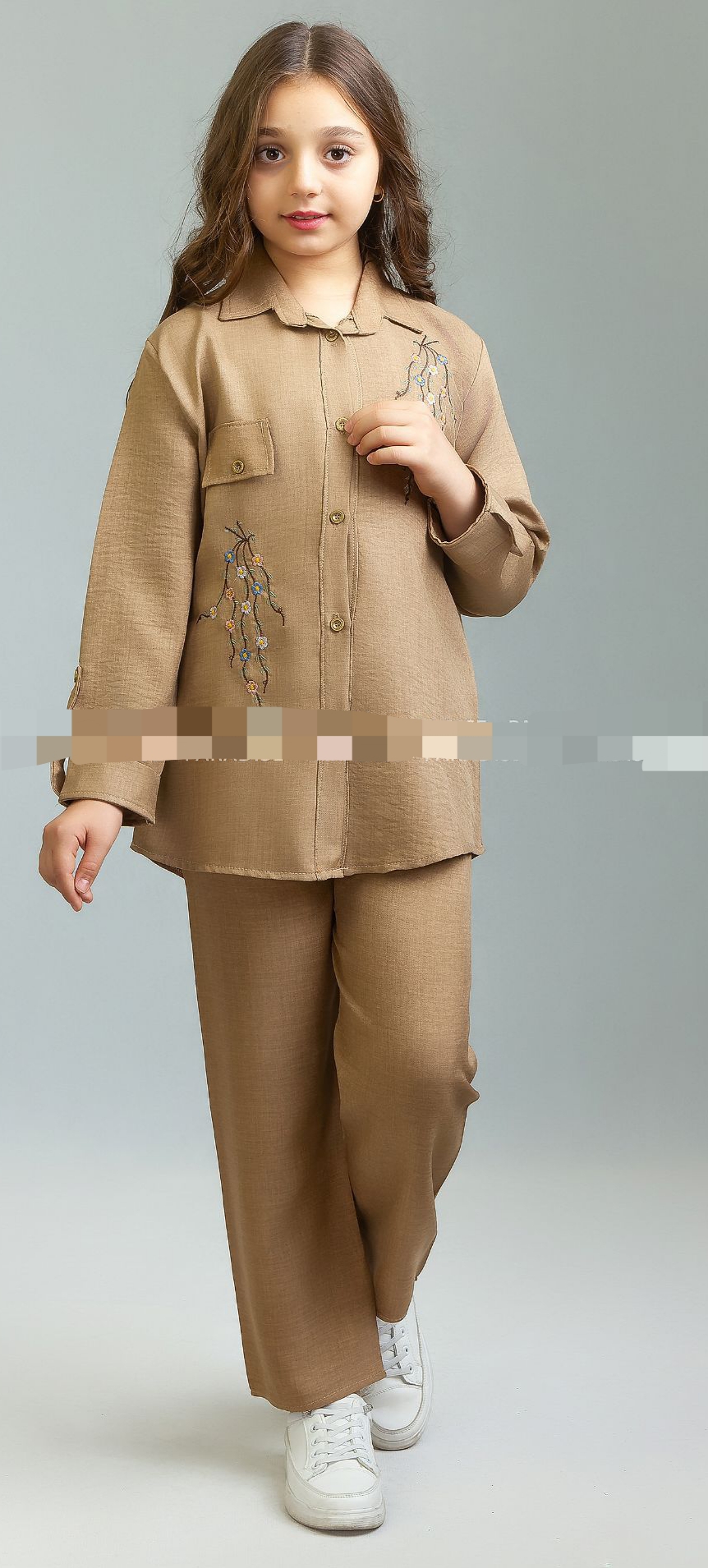 ست بلوز شلوار دورس دخترانه نگین دارکرم قهوه ای
