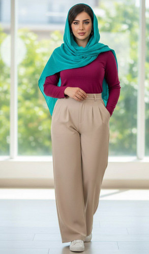 شلوارراحتی نخ پنبه پلیسه قواره دار زنانه