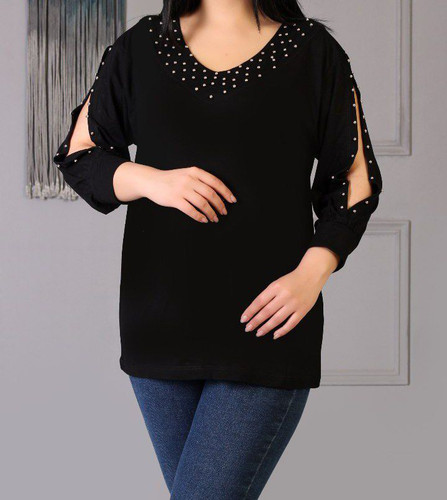 تیشرت زنانه نگین و مروارید ویسکوز آستین بندی خاص عیدانه