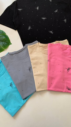 تیشرت زنانه نگینی پنبه کشی تنخور جذاب