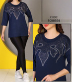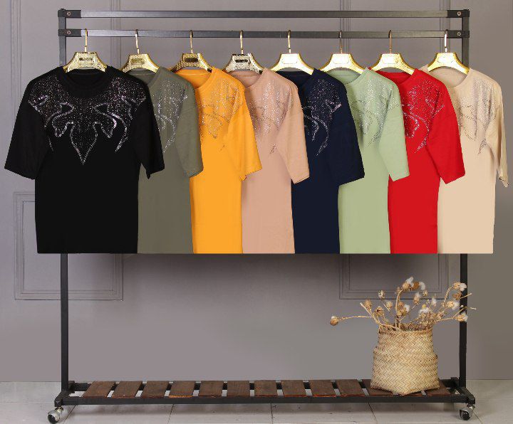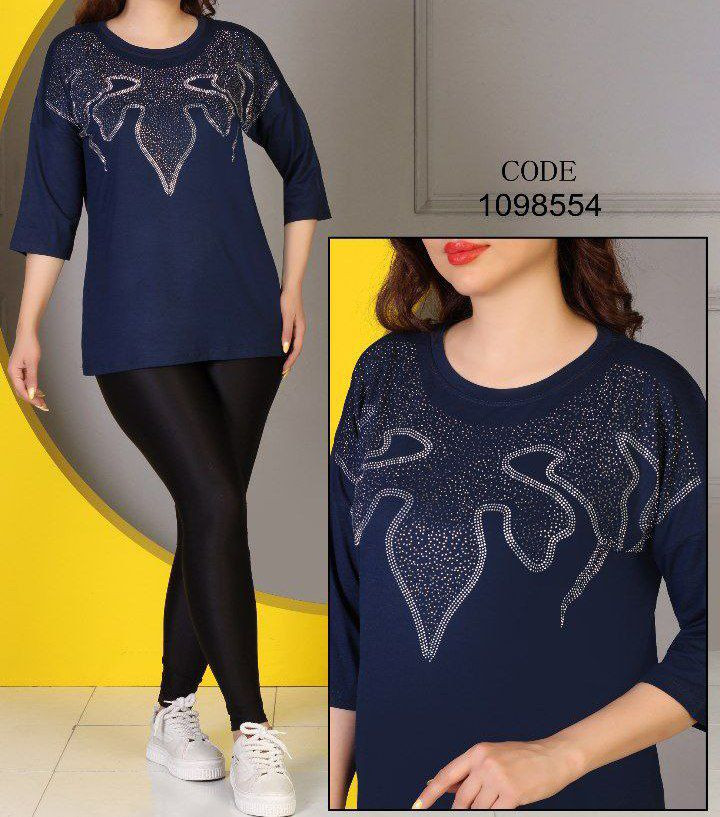 بلوز آستین ۳ ربع ویسکوز نگین کاری شده بسیار عالی با تضمین دوخت و کیفیت تنخور عالی