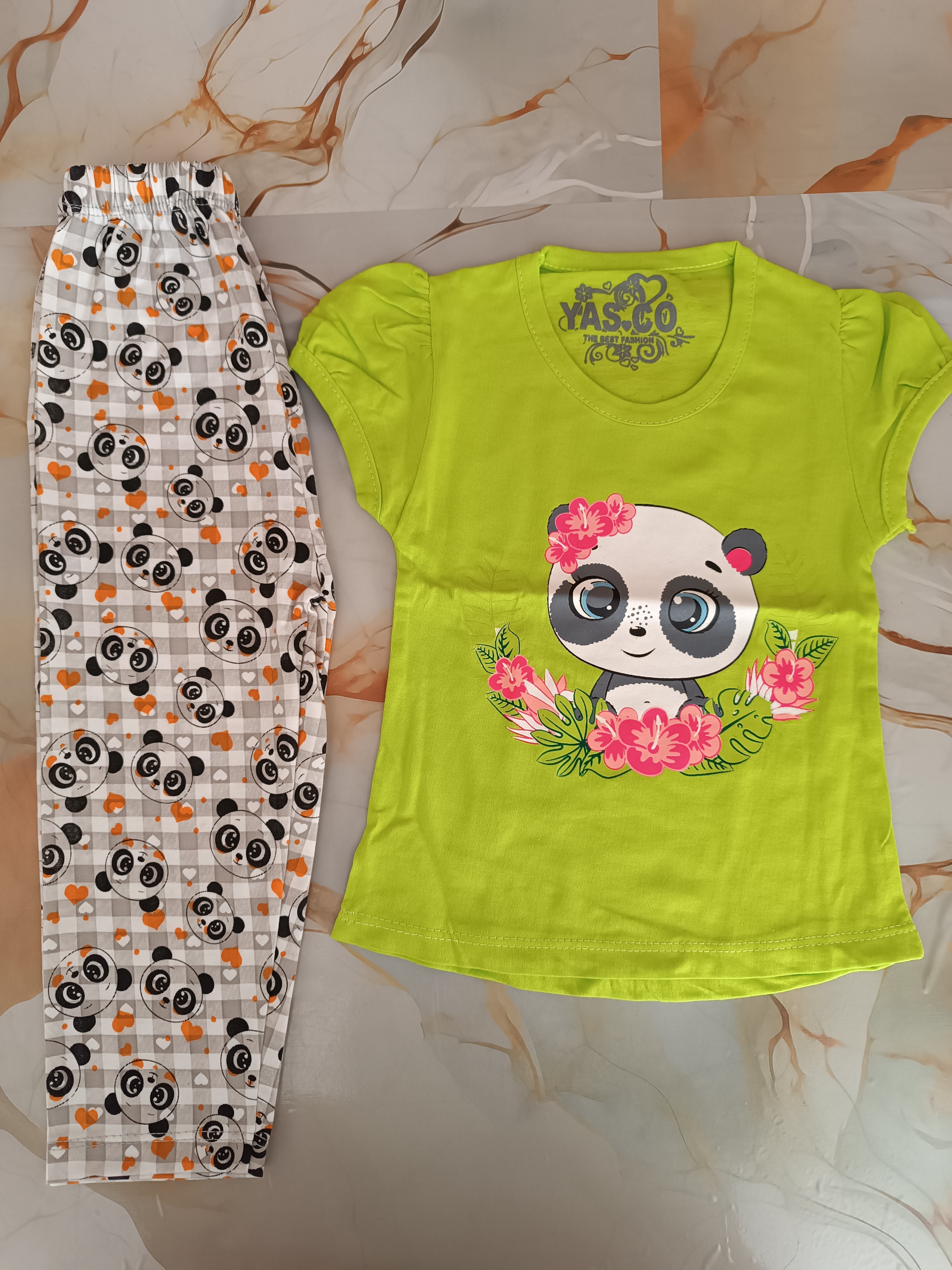 رنگ: رنگ تیشرت سفید و چاپ دختر و پاندا سورتمه سوار