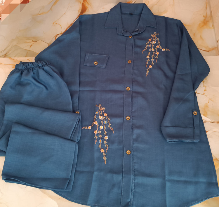 ست مانتو شلوار دخترانه گلدوزی طرح خوشه نوجوان